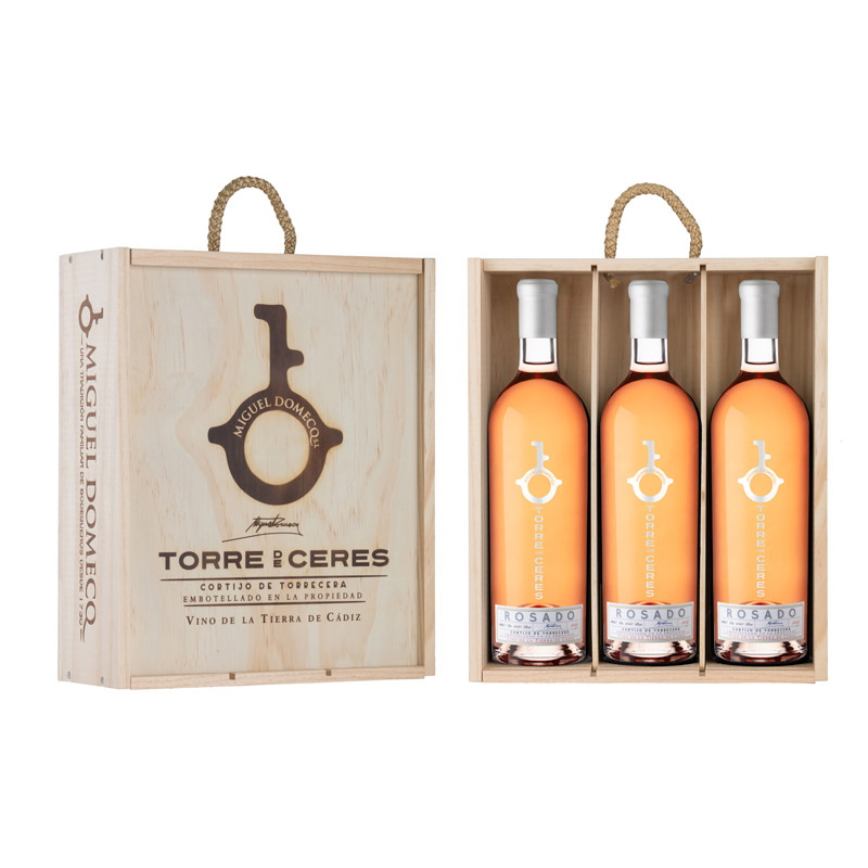Estuche especial con (3x) botellas de Torre de Ceres Rosado. De la uva Tintilla y garnacha, obtenemos este exquisito vino Torre de Ceres Rosado. Un tributo de la bodega a sus orígenes y un vino tinto de alta calidad producido en su totalidad en nuestra finca.